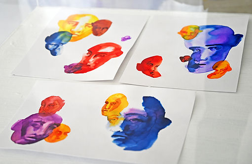 In my search to represent this critical eye, I began to explore, through the stain, various shapes and compositions that eventually transformed into distorted heads with adult male features. These floating heads symbolize that external, shapeless, and undefined gaze, which we often conceive as a superior entity that observes and judges our work while we are creating it.