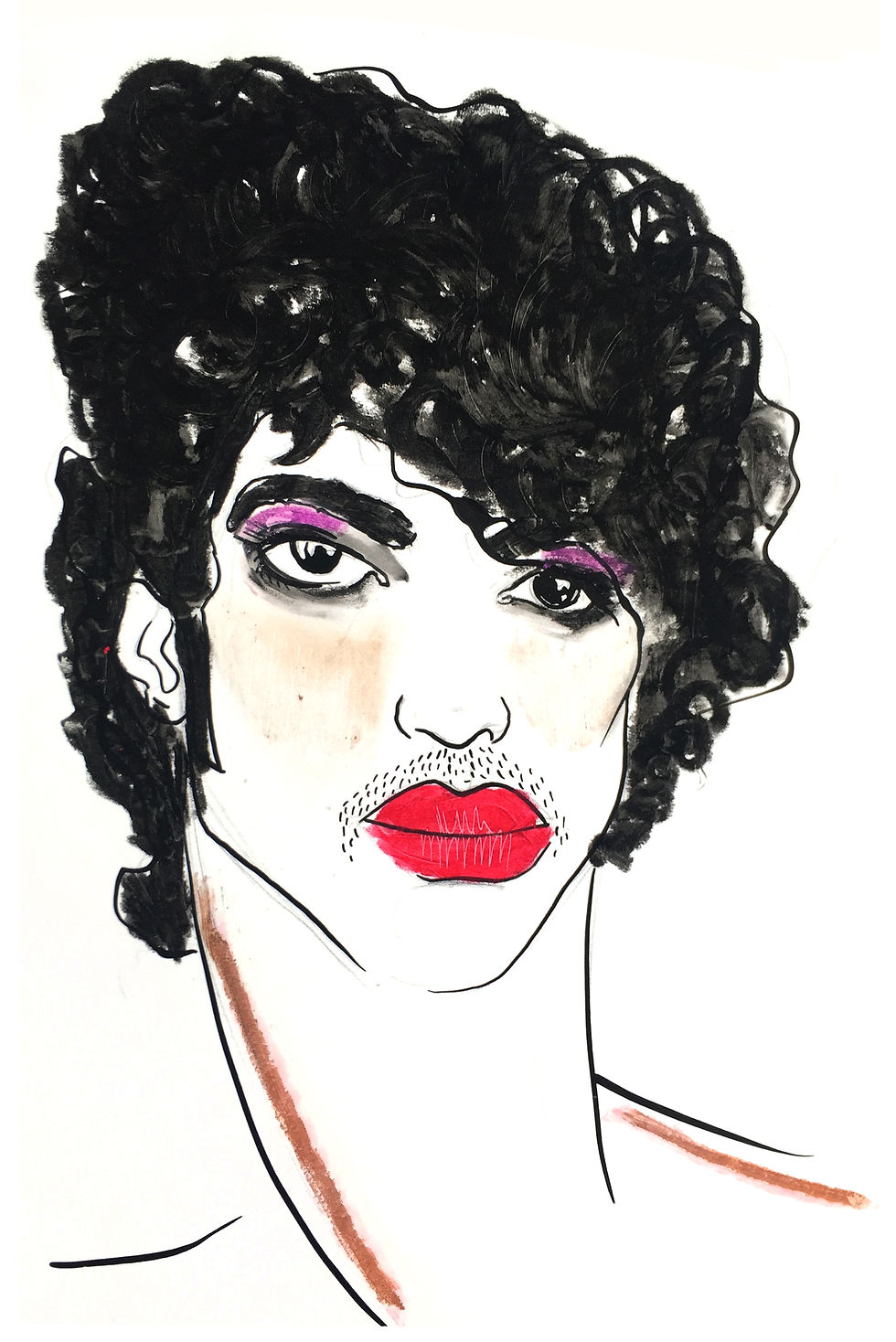 Como ejercicio de retrato me interesaba descifrar qué elementos de sus facciones dibujaban la delgada línea entre lo femenino y lo masculino. Con este propósito, retraté a personas reconocidas y conocidas por esta característica: Tilda Swinton, David Bowie, Claude Chaun y Bimba Bosé.
