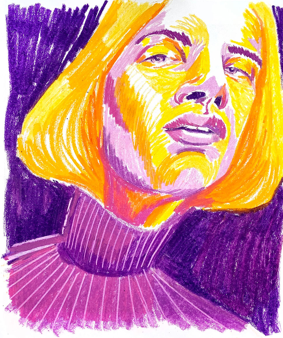 Como ejercicio de retrato me interesaba descifrar qué elementos de sus facciones dibujaban la delgada línea entre lo femenino y lo masculino. Con este propósito, retraté a personas reconocidas y conocidas por esta característica: Tilda Swinton, David Bowie, Claude Chaun y Bimba Bosé.